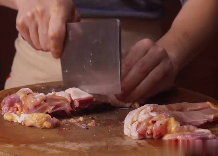 【食材处理】:首先我们把三黄鸡适当清洗一遍,然后用刀剁成小块,放在清水中浸泡十分钟,稍微过滤一下血水;茨菇去皮,对半切开备用;葱姜蒜干辣椒自行处理。