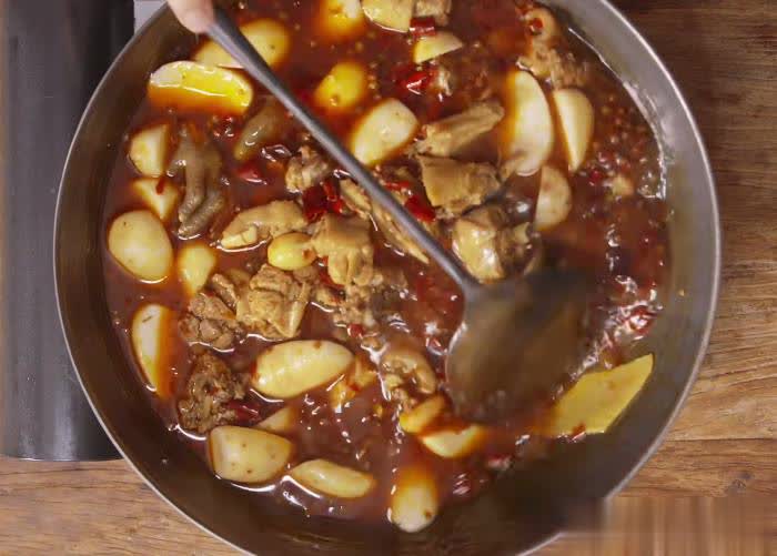相信对于这道简单的美食来说,操作手法上面应该算是非常简单的,过程也就是把鸡先炸一下,然后进行慢炖处理,操作过程应该和一般的红烧种类的美味差不多。只不过因为笔者今天把这道美食做成了麻辣版的,之中添加了半块火锅底料和一些干辣椒、花椒,这才有了今天这款不一样的美味。如果您对于麻辣版的茨菇炖鸡也感兴趣的话,不妨自己在家动手尝试一下吧。笔者相信对于这款美食来说,一定会成为你家人非常爱吃的美味家常菜哦。