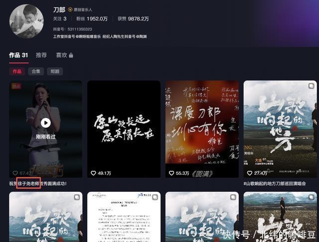 只见在刀郎的主页里啊,这个视频的标题上,他称呼徐子尧为老师,这一听是好像是有点摸不着头脑,但又完全不奇怪, 一来是从歌手职业上,称之为老师也一点不奇怪,二来就他本人叫老师也无所谓,我们也可以理解为谦虚。